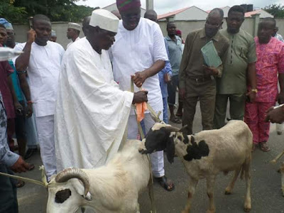 Fayose distributes rams to muslim leaders and urge them to pray for peace in the country