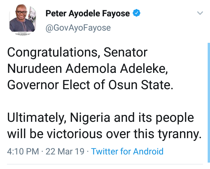 Congratulations, Senator Nurudeen Ademola Adeleke, Governor Elect of Osun State.