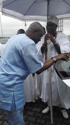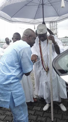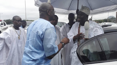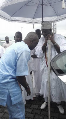 Ekiti state governor Ayo Fayose met the Ooni of Ife, Oba Adeyeye Enitan Ogunwusi Ojaja II at the airport in Abuja yesterday and respectfully greeted the monarch, who is younger in age than himself, by bowing.