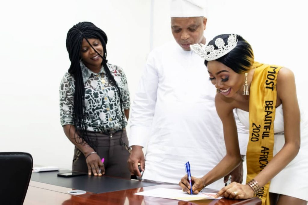 The top Nigerian model Queen Felicia Boco, who made headlines when she emerged the winner of the International pageant ‘Most Beautiful African Model 2020’ just bagged herself a new contract as Brand Ambassador for Summit Group Ltd.