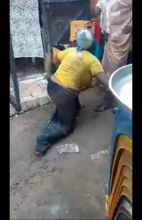 According to a report shared by an online user,the woman pictured below was caught stealing a baby in Okoko.She was disgraced and beaten by angry mob.