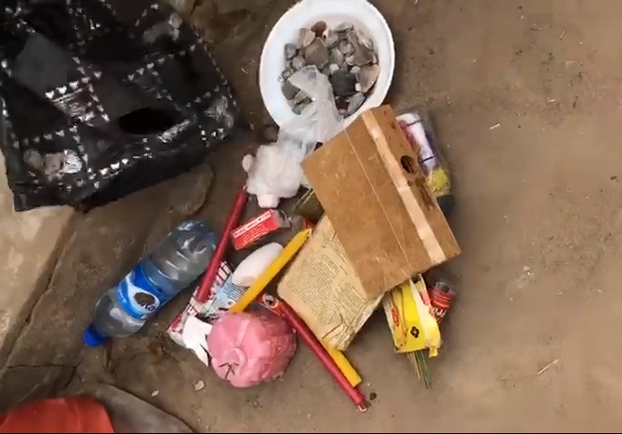 When her bag was searched, cowries, red candle, and other fetish items were found in her possession as the villagers questioned her on the kind of prayers she came to perform.