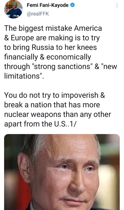 The biggest mistake America & Europe are making is to try to bring Russia to her knees financially & economically through “strong sanctions” & “new limitations”.