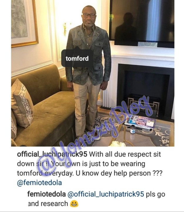Billionaire Businessman, Femi Otedola has replied a fan who said all he does is wear designers but he doesn’t help people.