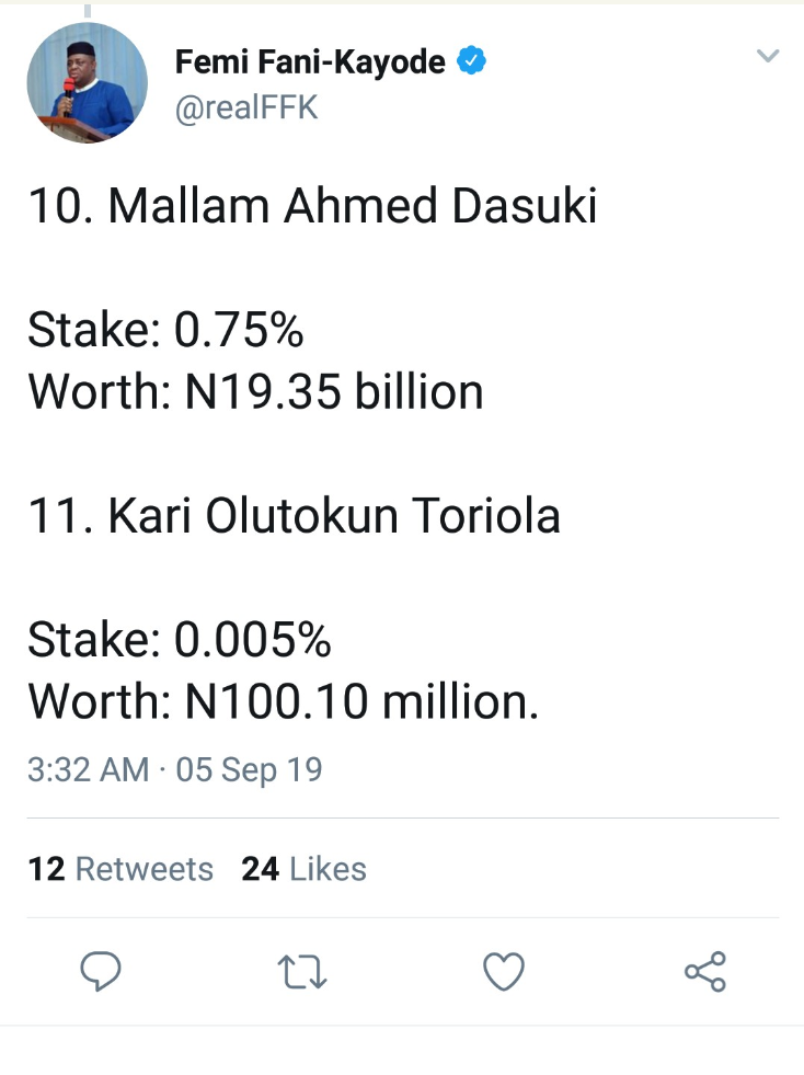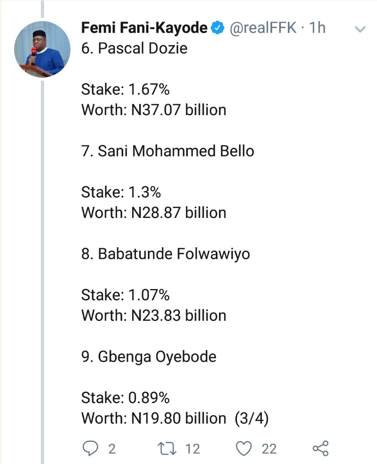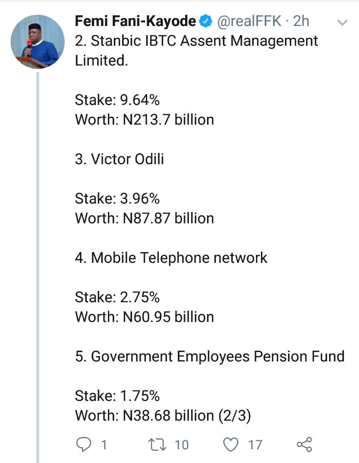 Femi Fani-Kayode released the list on Twitter in the heat of retaliatory Xenophobic attacks on MTN installations in Nigeria.