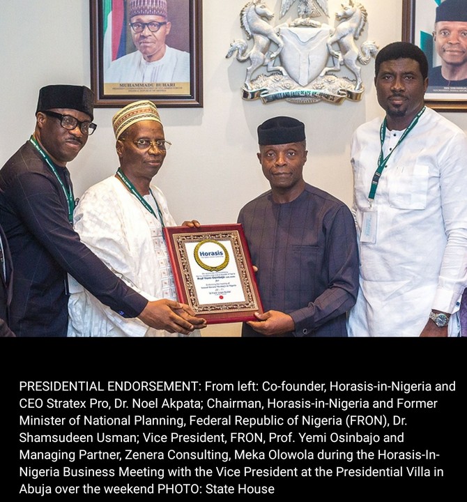 FG PARTNERS HORASIS, ZENERA CONSULTING TO ATTRACT 500 INVESTORS TO NIGERIA The Federal Government of Nigeria collaborates with renowned global think tank, Horasis, and leading public relations and advertising firm, Zenera Consulting to host the maiden Horasis-in-Nigeria Global Business Meeting. The summit will bring together an array of international top investors, heads of governments, bankers and hedge funds managers numbering over 500 to identify auspicious investment opportunities. The event which is scheduled to hold later in the year seeks to address universally relevant business issues and develop interdisciplinary solutions across sectors. Vice President of the Federal Republic of Nigeria, Prof. Yemi Osinbajo, while receiving a delegation from Horasis in Abuja, ratified and pledged the support of the Federal Government for the conference while at the same time alluding to the annual Horasis Business Meetings securing a permanent home in Nigeria. Vice President Osinbajo also received a partnership plague from the Horasis International representatives as a symbolic seal of the Federal Government’s endorsement of the conference in Nigeria.Reacting to the alliance between the revered bodies, Meka Olowola, Managing Partner of Zenera Consulting observed: ‘’Over the years, corporate Nigeria has deepened its robustness in terms of governance, ethics, technical competence and other global best practices, therefore priming themselves in position to forge strong international partnerships on a scale that will inevitably generate tremendous value for the subregion. This inaugural meeting is geared towards congregating the world’s most sophisticated businessmen to reinvigorate the Nigerian economy for the short and long term’’ Horasis-in-Nigeria Chairman, and former Minster of National Planning, Federal Republic of Nigeria, Dr Shamsudeen Usman (OFR, CON), and Co-founder/Regional Coordinator, Horasis-in-Nigeria, Dr. Noel Akpata also expressed satisfaction with the Federal Government’s endorsement and long-term support.Commenting on the potential of the Horasis-in-Nigeria conference to enhance the economic outlook of the country, Dr. Akpata remarked: ‘’ We fervently believe that against all odds, Nigeria’s myriad of problems should be visualised as opportunities needing a different level of innovation and creative problem-solving driven by nation building mindsets to resolve.’’Horasis Global Meeting is competitively compared by global media giant, Bloomberg, to the World Economic Forum in Davos which annually gathers over 500 Chairmen/CEOs of tier-1 companies of the world alongside Heads of Governments (Presidents, Prime Ministers) to discuss and find practicable solutions to problems shaping our world. As a nation, this global meeting will position Nigeria as a veritable investment hub to the world, improve foreign relations, bilateral agreement and expose homemade Nigerian brands to a wider audience.