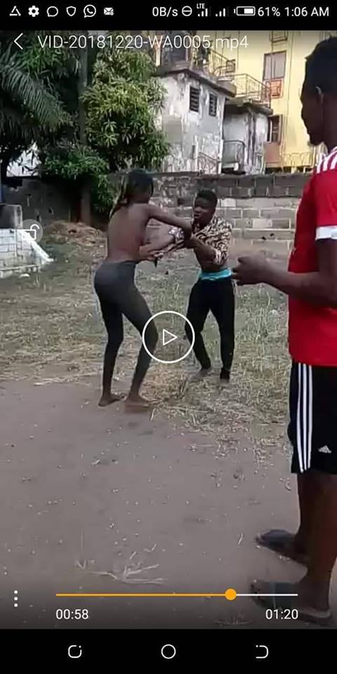 According to reports, the fight started online when the lady identified as Kiki allegedly made a post threatening to beat up the young man named Cammy, when she meets him in their Facebook group’s hangout in Lagos.