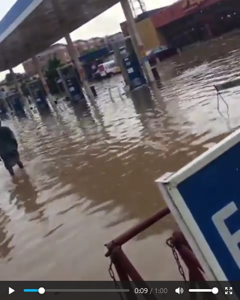 According to eyewitness, heavy downpour nearly destroy filling station at ogba, Ikeja, Lagos state stops staffs from working.