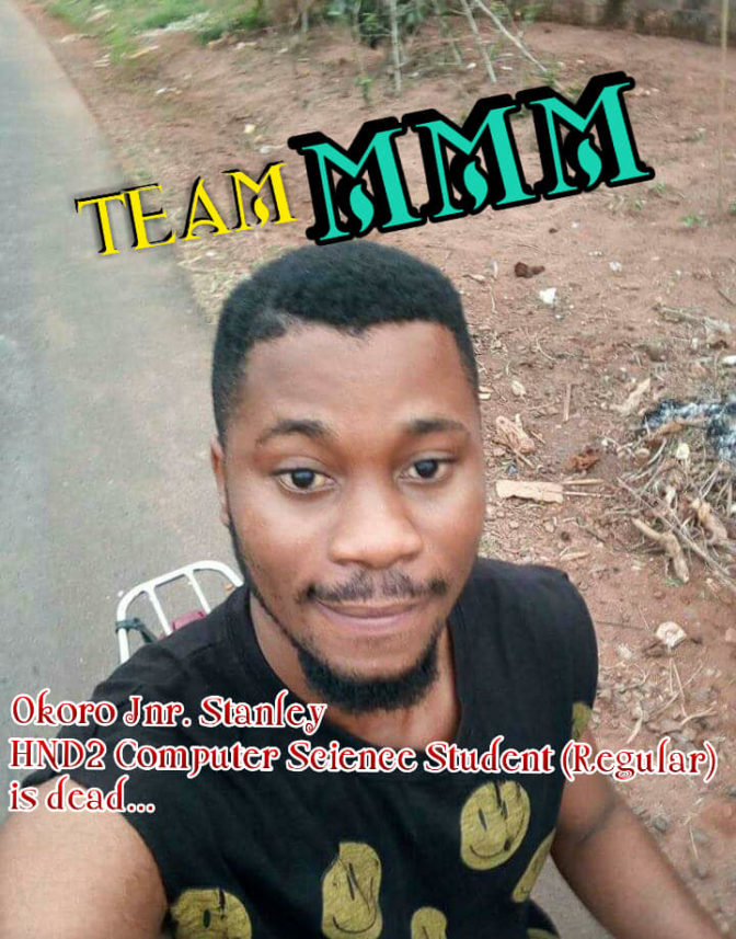 According to an eyewitness, the 26-year-old victim identified as Stanley Okoro, was trying to conclude his seminar work which he was supposed to have defended on Thursday this week before the accident happened.