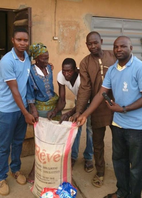 “Visit to Rashidi Yekini’s mother today. We intend to sustain this monthly supplies and multivitamins for her.