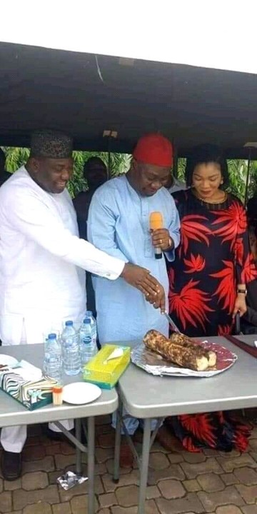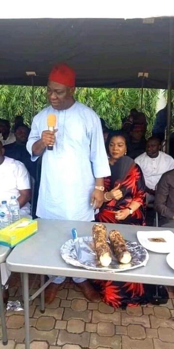 Finally, ‘Distinguished’ Senator Ike Ekweremandu atago ji local (eaten local yam) in the presence of the Governor of Enugu State Ifeanyi Ugwuanyi and few other guests.