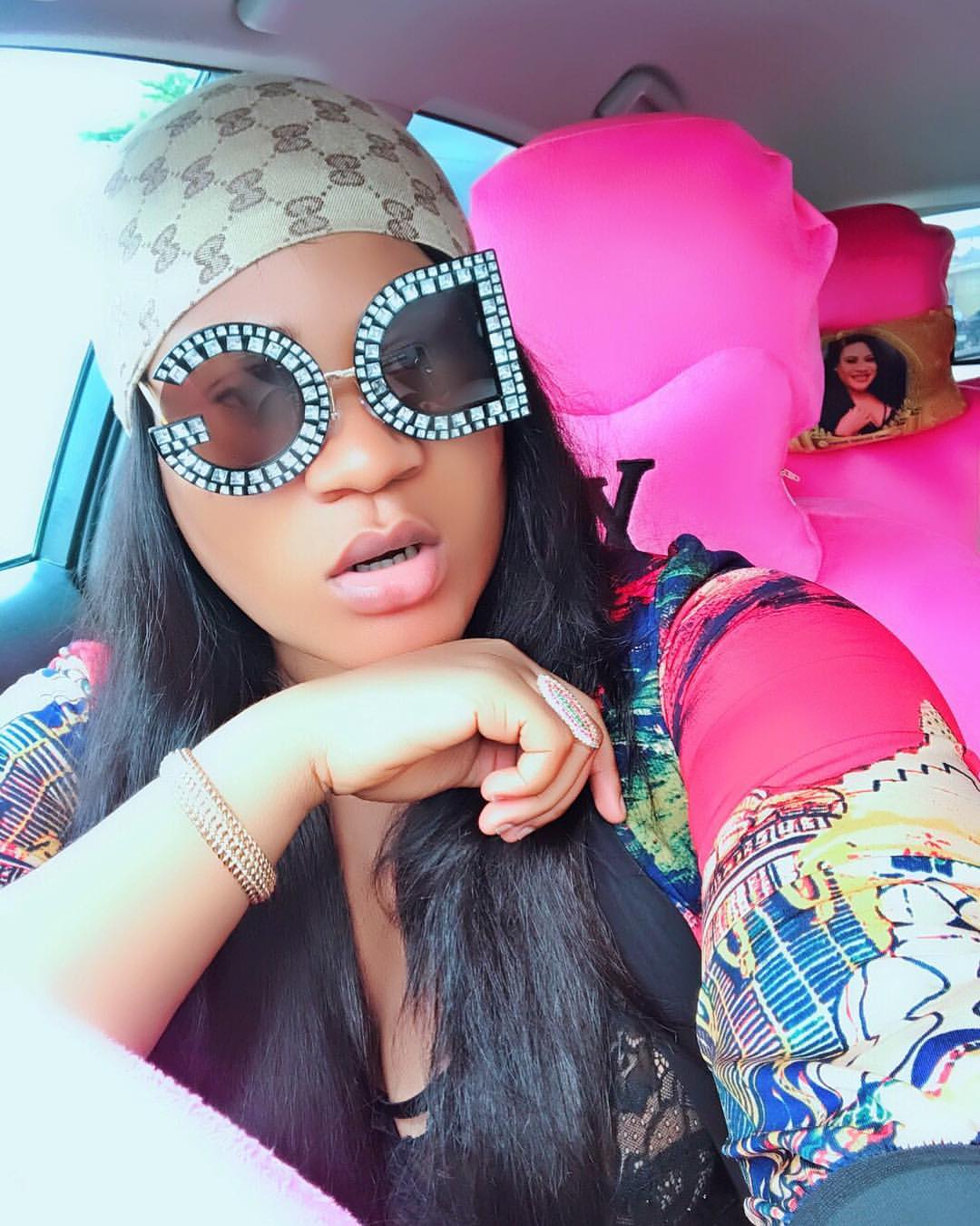 Nollywood Actress, Nkechi Blessing shared this photo as she rocked an eye-catching pair of crystal embellished Dolce and Gabbana sunglasses which is effortlessly stylish and luxurious.