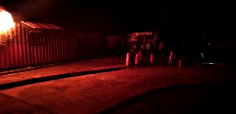 “The inferno, which gutted the container housing Smart Card Readers, started at 7.30 pm. Men of the Fire Service are however currently containing the fire.