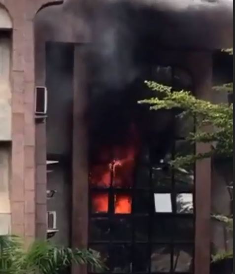 The fire which has been put out by firefighters, affected the second floor of the building located in the Garki area of the city. The Cable reported that before the arrival of fire fighters, residents and staff were seen throwing things including stones at the building in a bid to put out the fire.