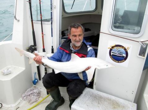 A man has been left stunned after catching a rare all-white Albino shark off the coast of the Isle of Wight.