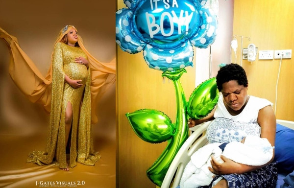 Here is the first photo of Toyin Abraham and her son she welcomed with Kolawole Ajeyemi on August 14.
