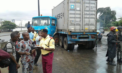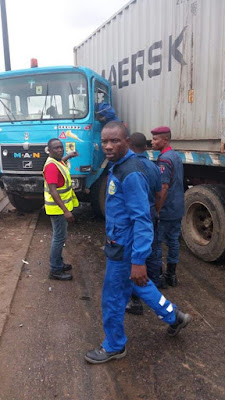 The Agency received a distress call at about 9.40 am today24/9/2016of a container accident at Ilupeju Oshodi Express Way inward Anthony.