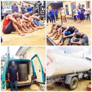 “Barely few days after arresting and parading 19 suspects here at the Command Headquarters; based on credible Intelligence the Antivandal land Patrol team has also arrested 5 suspects for illegal dealings in petroleum products.
