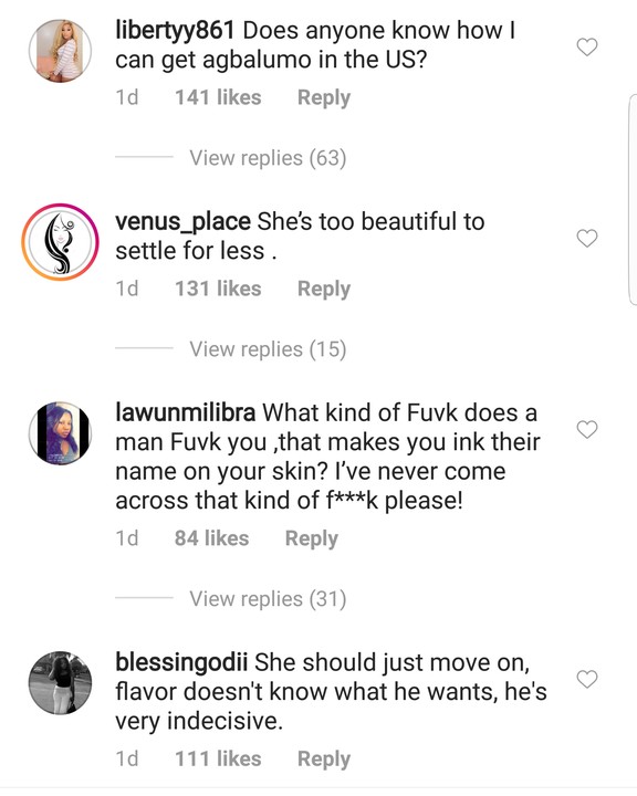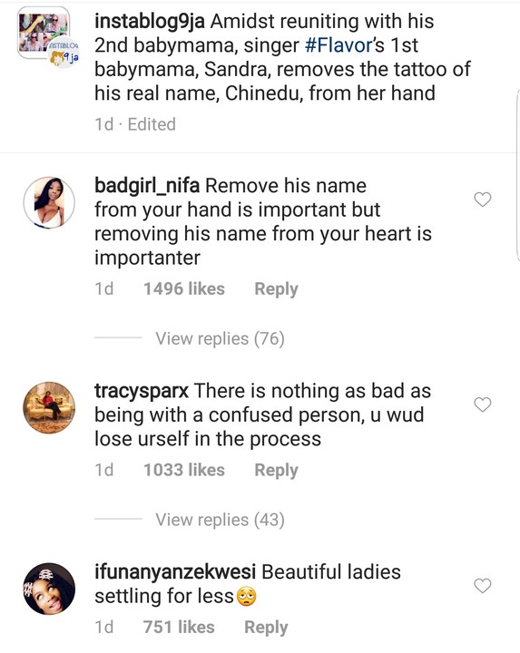 Flavour’s first babymama removed the tattoo a few weeks after the singer was spotted with his second babymama at an event in Cameroon.