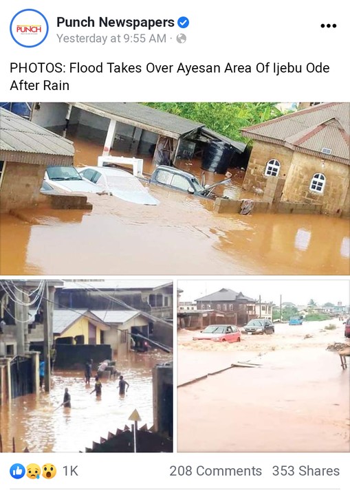 PHOTO NEWS: Flood Takes Over Ayesan Area Of Ijebu Ode After Rain