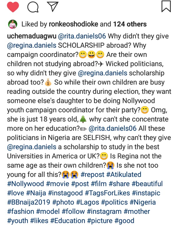 In reaction to Recent Political party appointment of Regina Daniels as the Youth cordinator for nollywood for Atiku Campaign, controversial popular actor Uche Maduagwu has come for Regina Daniels For accepting the appointment.