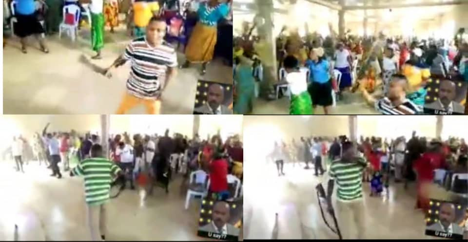 While some of the members were ”armed” with brooms, sticks, and machetes to destroy the devil and his cohorts, the leader of the prayer session was armed with a gun.