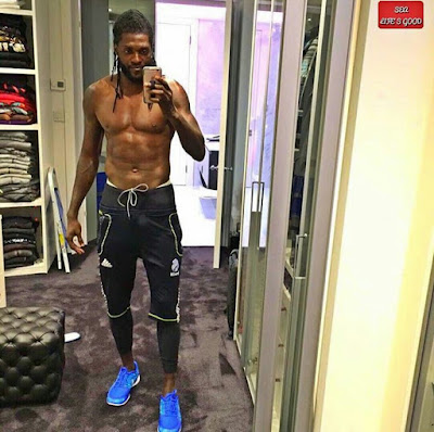 The ex Tottenham, Real Madrid and Arsenal player has been working out in Togo and Ghana with a personal fitness trainer to get in shape, so he can get signed by another club. He posted this picture of his toned abs after a fitness session on his instagram page.