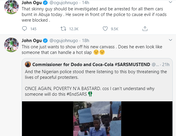 Popular Nigerian footballer, John Ogu has demanded for the arrest of the spokesperson of the Indigenous People of Abuja’s spokesperson, Yunusa Yusuf for threatening #EndSARS protesters.