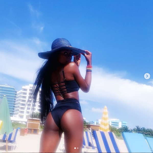 Former Big Brother Naija housemate, Khloe shared these sexy photos of herself showing off her cheeky backside while posing in a two-piece swimwear.