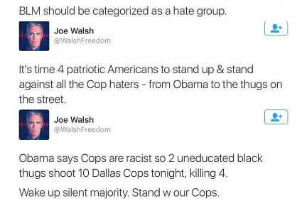 Former Congressman Joe Walsh threatens Obama and BLM after 4 Dallas cops were killed by snipers