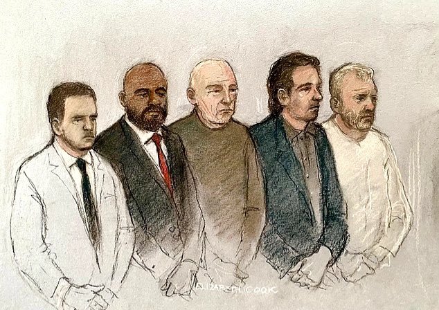The six men stood in line in the dock for the 27 minutes it took for the charges to be read by the clerk.