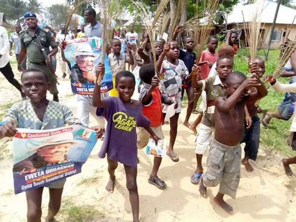 ‘They said Emmanuel Uduaghan visited Ayakoromo, yes My Home Town Ayakoromo. These are the electorates that were on ground to welcome him and Campaign for me.