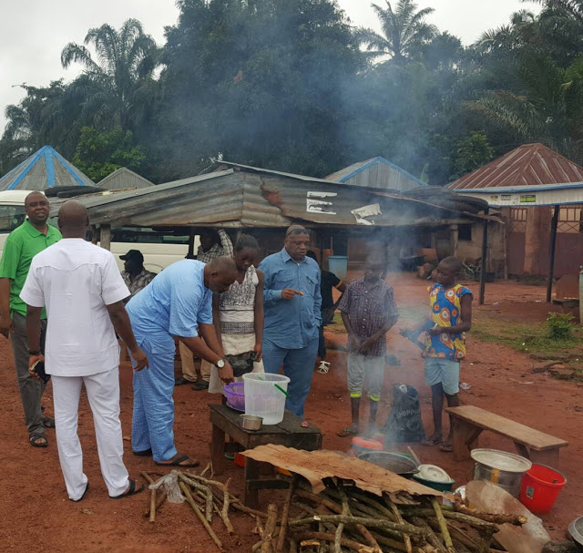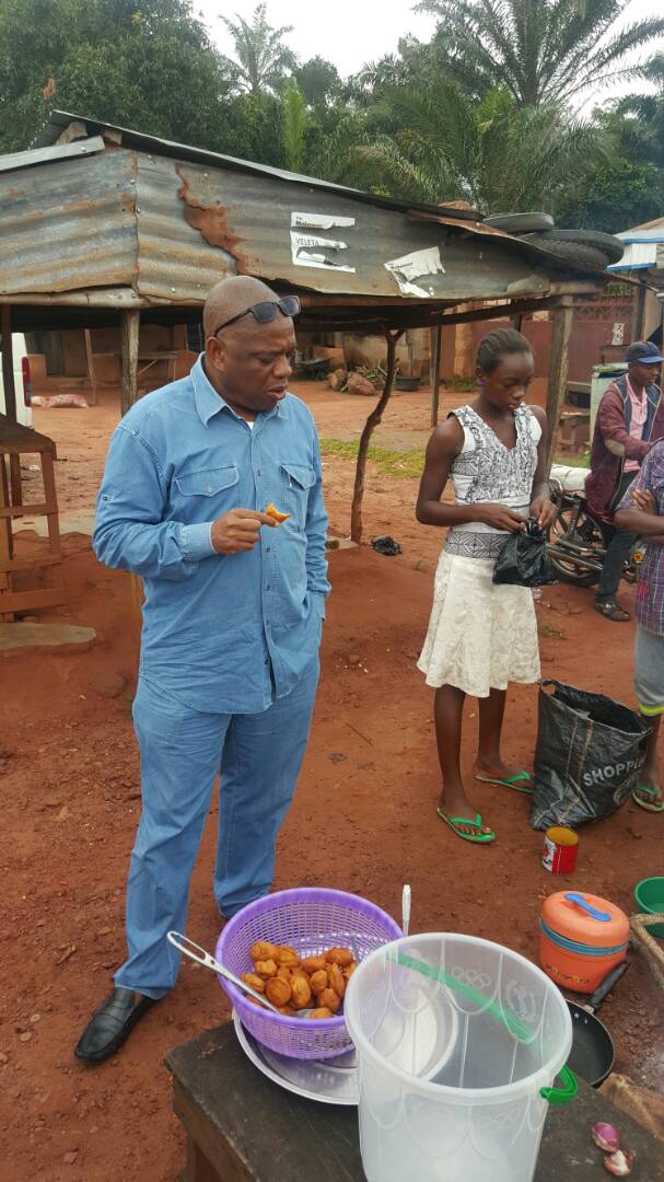 Former governor of Abia state and billionaire businessman, Dr. Orji Kalu was spotted early morning today buying and eating Bean cakes popularly known as ‘Akara’ on the road side with friends and colleagues in Abia state. The 57-year-old politician reportedly tipped the ‘Akara’ seller handsomely after patronizing her.