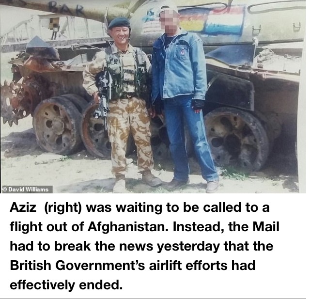 Aziz was waiting to be called to a flight out of Afghanistan. Instead, the Mail had to break the news yesterday that the British Government’s airlift efforts had effectively ended.