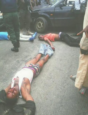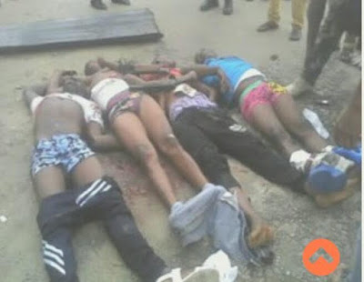 According to residents in the area, the suspected robbers who had earlier robbed a church at Cemetery road, were driving towards Okere-Ajamimogha road when a team of mobile policemen sighted, followed them and engaged them a shoot out which led to the death of the four of them.