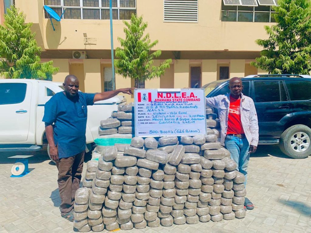 Babafemi said in the case of Shuaibu Nuhu Isa (a.k.a Don), 55, and Zidon Zurga, 50, they were arrested by NDLEA operatives on November 25, 2024, along Numan-Yola Road with 500.800kg skunk, a strain of cannabis, concealed in a pilot Toyota Hilux vehicle marked Lagos NT 829 AAA and a Prado SUV with a fake presidency number plate 01B-266 FG.