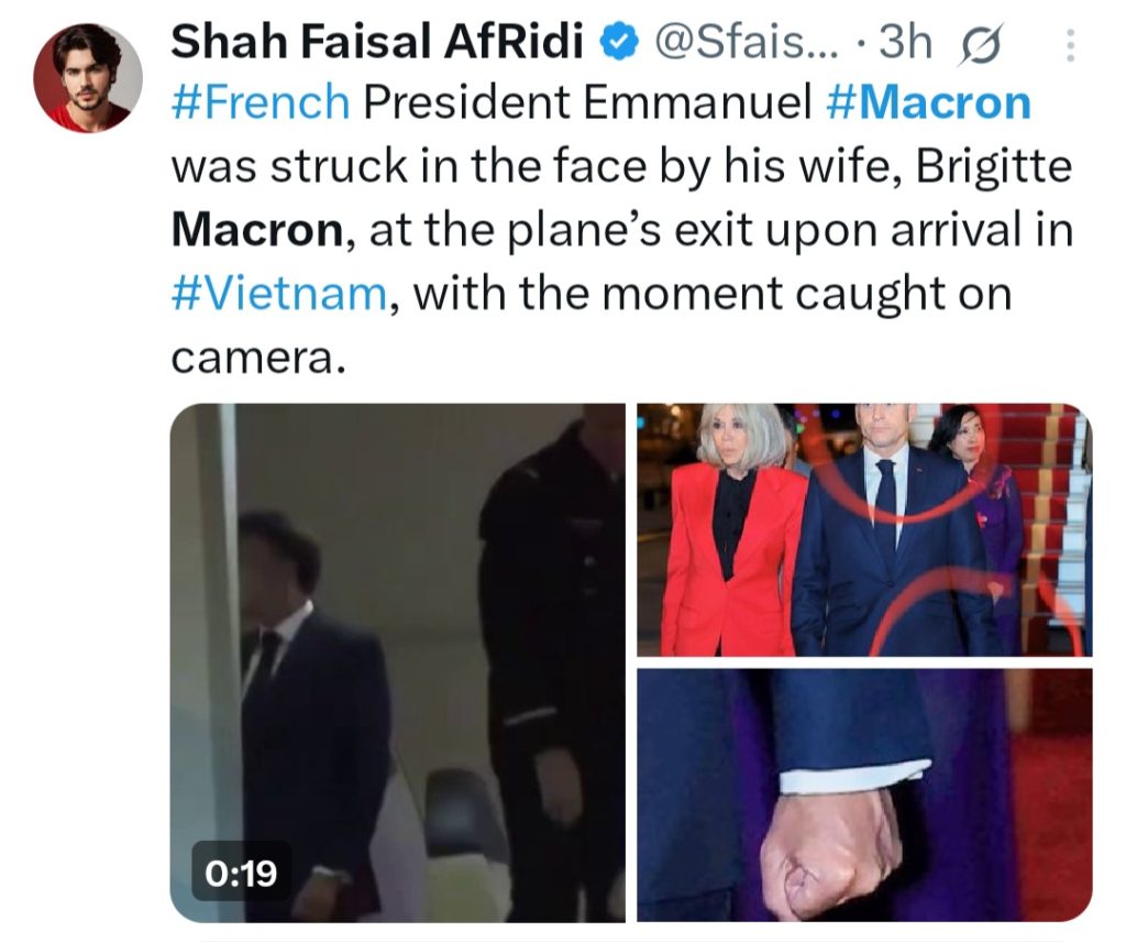 A video of Emmanuel Macron, the President of France, getting shoved by his wife, Brigitte Macron, has emerged, shocking the international community.