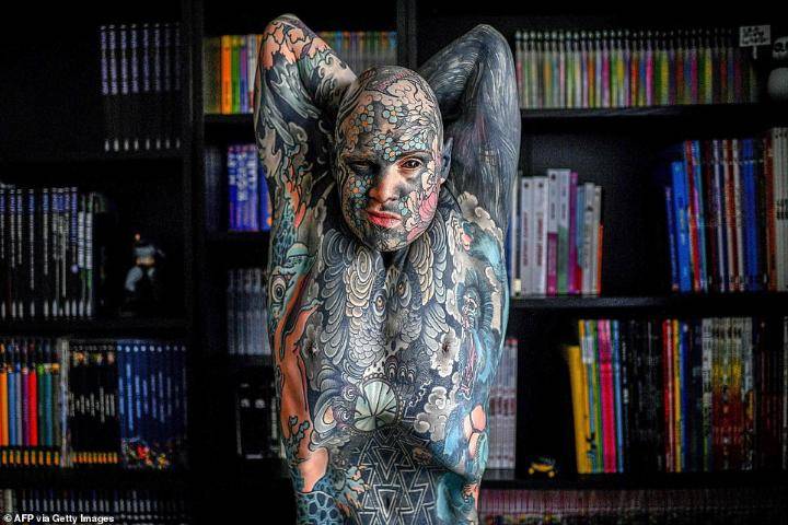Helaine, who was born in Paris, got his first ink when he was 27 and has since spent over £35,000 and around 460 hours under the tattooists’ needle.