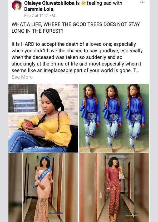 Another friend wrote; WHAT A LIFE, WHERE THE GOOD TREES DOES NOT STAY LONG IN THE FOREST? It is HARD to accept the death of a loved one; especially when you didn’t have the chance to say goodbye; especially when the deceased was taken so suddenly and so shockingly at the prime of life and most especially when it seems like an irreplaceable part of your world is gone. The grief and the pain can be unbearable; you cry a river and your sorrow knows no end. You never really know what it’s like until you are there yourself, but you look to God because he’s the only one who can comfort you. Death and indeed a death so sudden and painful like the death of my dear friend yester-night makes me realize the brevity of life. We often take life for granted; too much so. Her death has made me sit down and reflect. . It’s made me put things in perspective. I want to live life and love it, I don’t want to spend my life being unhappy or dissatisfied, I want to put a smile on my face because that’s what can make a dark day seem bright and I want to play the game of life to the very end.Ikimot is gone ; None of us can bring her back, no matter how we cry, she is gone. I met her during my senior secondary school days and we became friends…. I miss disturbing you, you proved to be a good buddy all through… After school we moved on with our various life but you still stood as a friend Ikimot but Today I got the news that you left this sinful world… I got the news online about the arrival of the new soul (04/02/2019) but I wanted to wish you by calling or a surprise visit, the second day(05/02/2019) was your birthday, I was busy that I could not wish you. I planned to get your number from a friend today to wish you but I got the shocking news i never expected that you have left the world yesterday(06/02/2019)… How can that happen ? Where is my Portable friend, that friend that whats she loves doing most is to smile. She is calm, loving, patient and friendly.. We all find it hard to believe but the truth is that Quadri Ikimot Damilola has gone to rest. All we can do is to pray for her…. So for those of you who can identify with me in grief, make it your aim to try and look past it and move on but the memory will exist forever Death is a graduation. When we’re taught all the things we came to teach, learned all the things we came to learn, then we’re allowed to graduate. What a painful exitOremi please rest in peace but make sure you protect your kid that you left for us.(AMEN)MY CONDOLENCE TO THE QUADRi’S & SANNI’S REST IN PEACE QUADRI IKIMOT DAMILOLA…