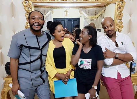 Checkout this adorable photos of 2face with Ik ogbonna, Annie Idibia, toke Makinwa, Toyin Abraham on set of a new movie.