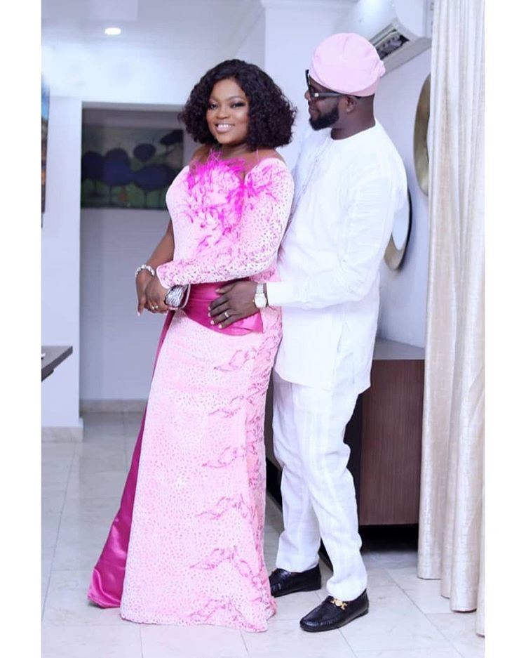 Nollywood actress, Funke Akindele and her hubby, JJC Skillz were pictured together as they stepped out in style to Media mogul and Ebonylife CEO, Mo Abudu’s daughter, Temidayo who walked down the aisle yesterday