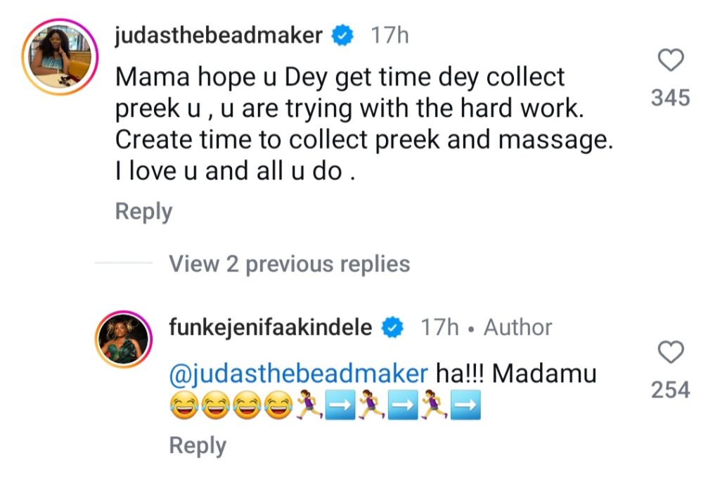 Funke Akindele has responded to a fan who is curious about what goes on in her personal life.