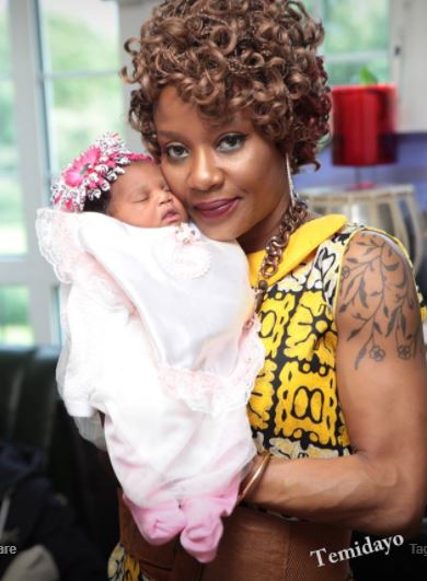 Her new bundle of joy arrived on August 1, 2017 and was christened jasmine Dolapo Opeoluwa Adeyemi two days ago.
