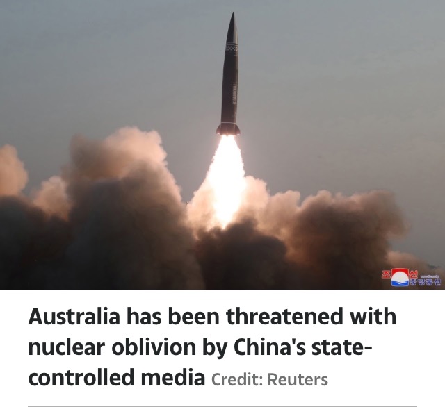 But the Chinese Communist Party mouthpiece, the Global Times, went one step further and directly threatened Australia with nuclear destruction.