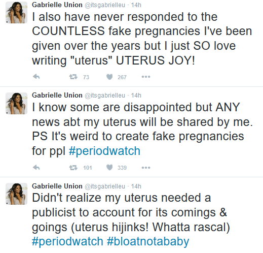 The 42 year old actress who is married to Dwyane Wade took to twitter to shut down rumours she’s pregnant after these photos above hit social media. In fact, MTO reported that confirmed sources told them the actress is 2 and a half months pregnant. See her tweets denying it after the cut…