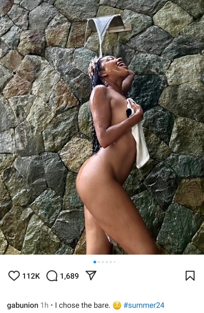Gabrielle Union left little to the imagination as she shared a photo of herself washing up.