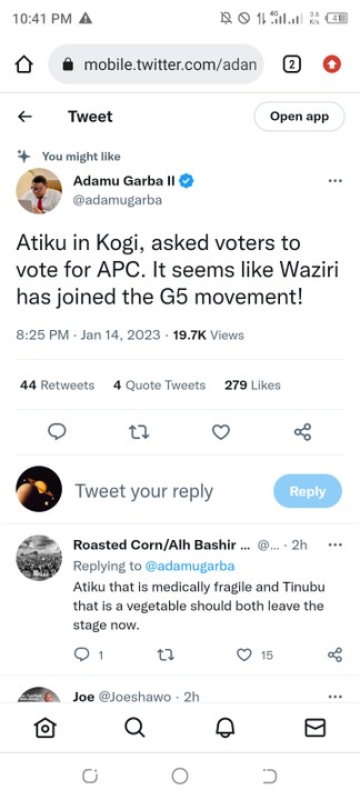 Atiku in Kogi, asked voters to vote for APC. It seems like Waziri has joined the G5 movement!