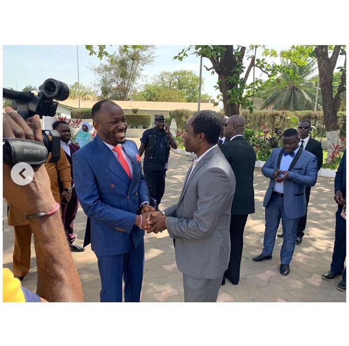 President Adama Barrow of The Republic of the Gambia on Thursday, hosted Servant of God and senior pastor at Omega Fire Ministries (OFM) worldwide, Apostle Johnson Suleman, who was in the tiny West African country on a two-day restorative crusade.