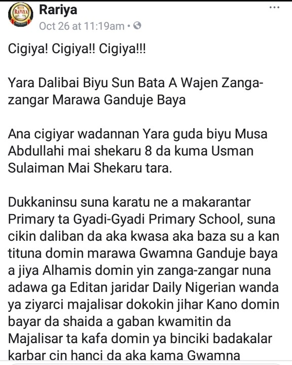Two pupils from Gyadi Gyadi Primary School, Kano State were last seen after Kano State Government allegedly forced them to participate in a protest against Jafar Jafar.Anybody body with a useful information of their whereabouts should contact these numbers 08093555636, 08024060381
