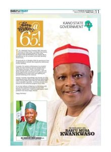 In an advertisement in the Daily Trust of Thursday, Ganduje eulogised Kwankwaso, saying he cherishes what he termed their long-standing personal, official and political relationship.